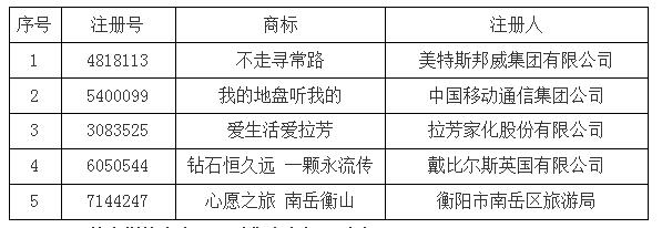 除“人生丰收时刻以外”,还有大量的广告语得以获准注册,如: